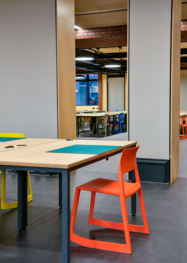 • Every student will have their own desk, drawing board, power supply, USB point and cutting mat. They will keep their own studio space all the way through their degree.