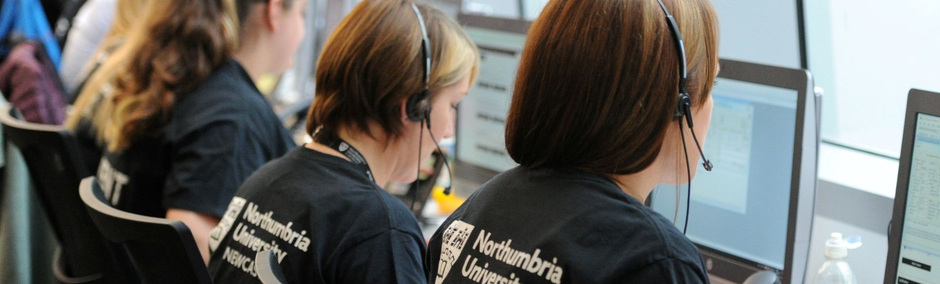Caption:A member of staff answering a call on Northumbria's Clearing Hotline
